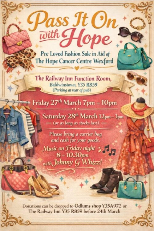 Lisa & Natasha are hosting a pre loved fashion event at The Railway Inn, Baldwinstown. Co. Wexford. Y35R859 on Friday 27th March at 7-10pm and again on Saturday 28th March […]